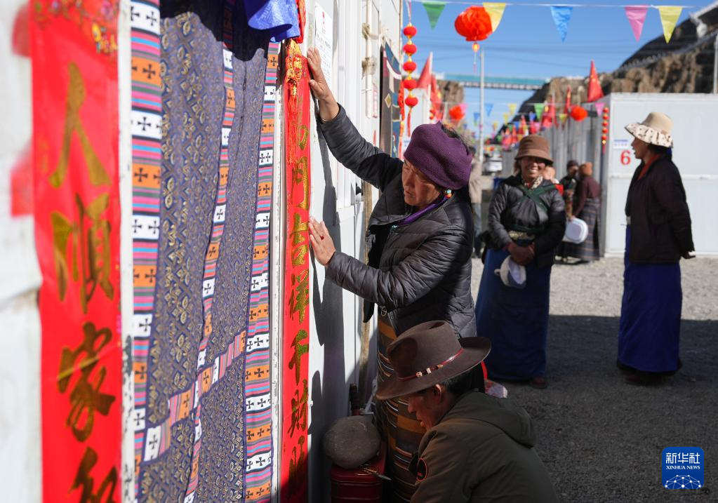 1月26日,拉孜縣吉如村安置點群眾在掛吉祥結。新華社記者 晉美多吉 攝?