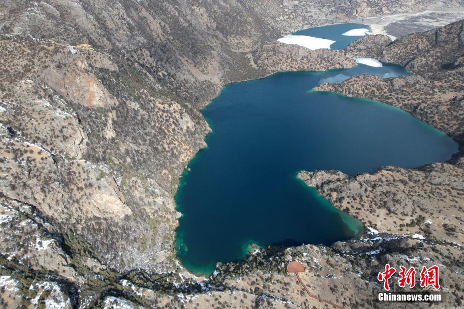 2月16日,位于西藏昌都市邊壩縣的“三色湖”在群山環(huán)抱中景色壯美。“三色湖”由黑湖、白湖、黃湖組成,群山環(huán)抱中的三處相鄰湖泊在陽光下分別呈現(xiàn)不同色彩。圖為三色湖景色。中新社記者 李林 攝(無人機照片)