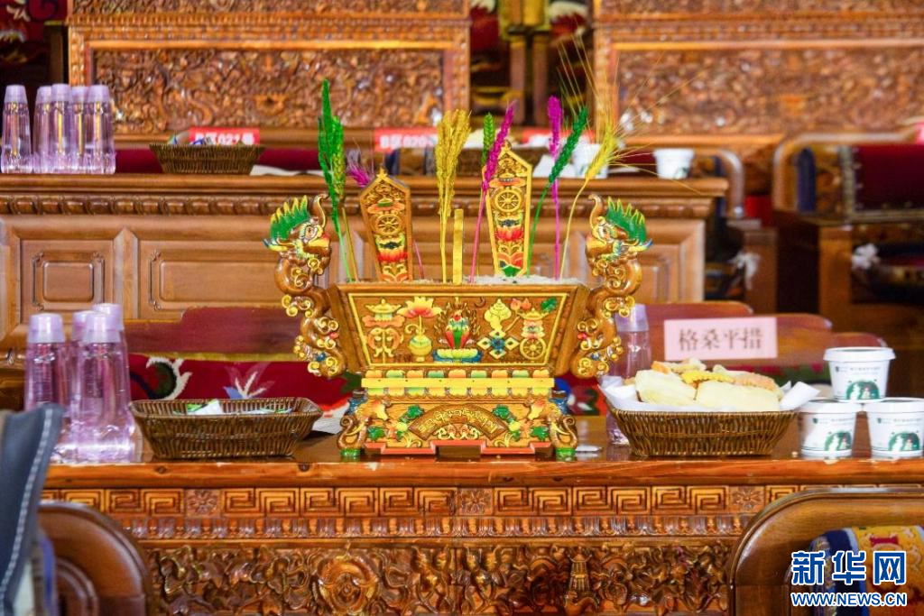 拉薩市2025年春節(jié) 藏歷“木蛇”新年聯(lián)歡會錄制現(xiàn)場觀眾席擺放的“切瑪”(2月14日攝)。新華網(wǎng)發(fā) 龍杰明 攝