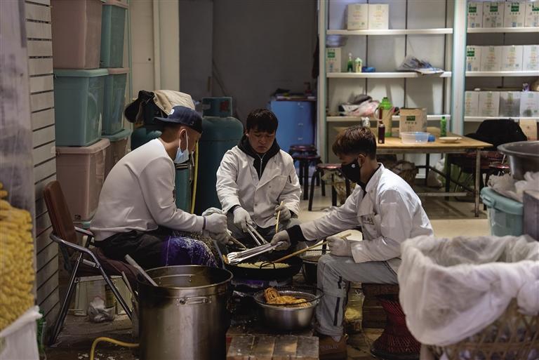 第一塊卡賽不僅炸出了好寓意,也炸出了大家的安心。索朗說:“出鍋的第一塊卡賽如果是顏色均勻靚麗且香酥的話,寓意著今天的卡賽會‘聽話’,炸出來會很好看?!彼骼仕f的“聽話”,其實是油溫始終控制在七成熱狀態(tài),不會炸糊也不會翻涌。