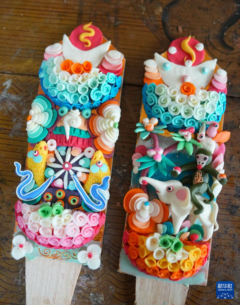 在拉薩市老城區(qū),小學(xué)徒在展示剛剛做好的一對(duì)酥油花(2月25日攝)。新華社記者 晉美多吉 攝?