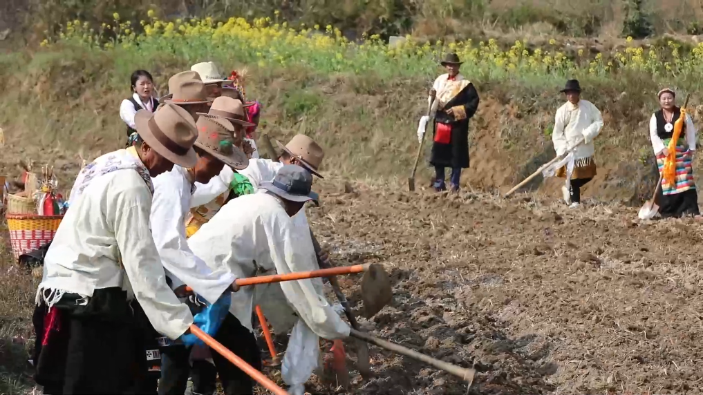儀式現(xiàn)場,村民們遵循傳統(tǒng)習俗,唱起悠揚的豐收歌,在田間地頭犁地播種。