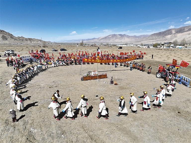 桑珠孜區(qū)聯(lián)鄉(xiāng)差吾慶村春耕春播儀式全景(航拍圖)?! ?/p>