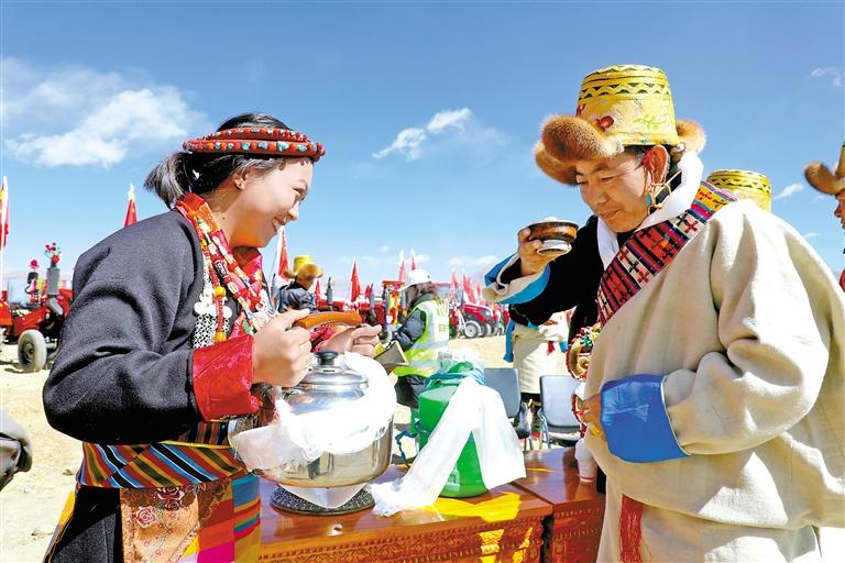 康馬縣婦女敬青稞酒。