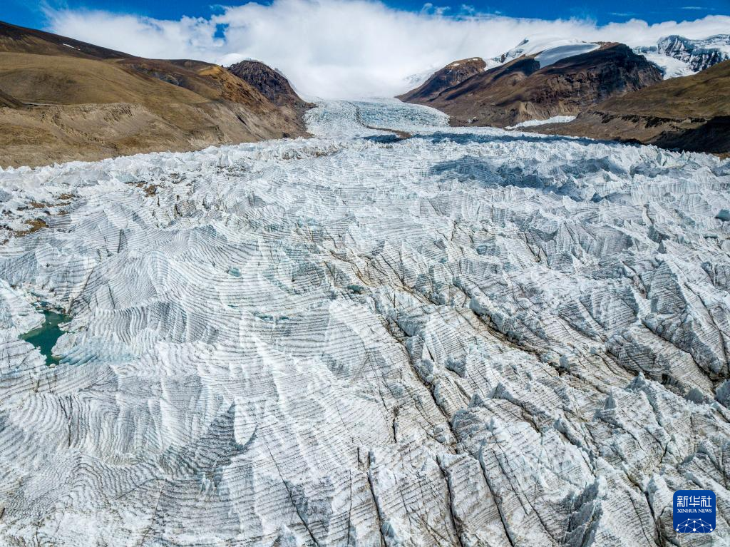 這是日喀則市仲巴縣境內(nèi)的杰瑪央宗冰川(無人機(jī)照片,2024年8月24日攝)。新華社記者 丁增尼達(dá) 攝