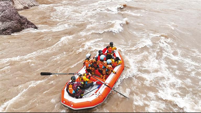 圖為游客正在體驗(yàn)驚險(xiǎn)刺激的漂流活動(dòng)。記者 平措郎加 董國(guó)峰 攝