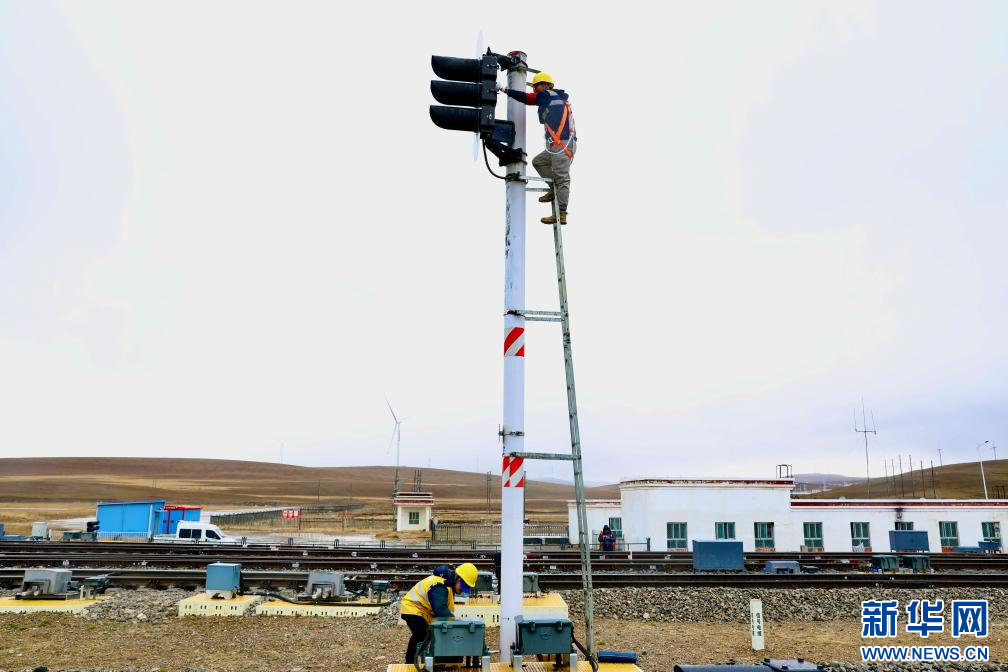 海拔4513米的那曲火車站,共有信號機(jī)108架。列車的安全運(yùn)行離不開信號設(shè)備的指引,負(fù)責(zé)此次信號機(jī)燈盤更換的侯曉東和工友們被大家親切地稱為“點(diǎn)燈人”。