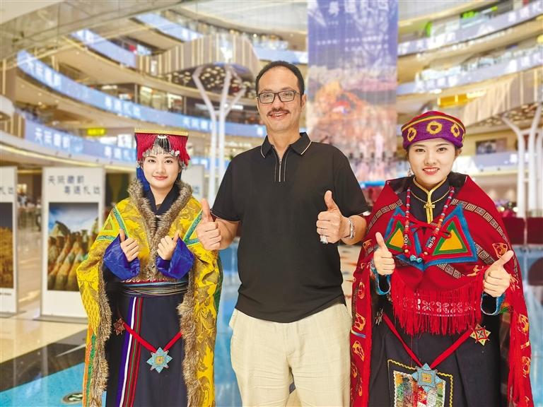 圖為觀眾與身著札達(dá)傳統(tǒng)服飾的工作人員合影留念。 (札達(dá)縣文化和旅游局供圖)