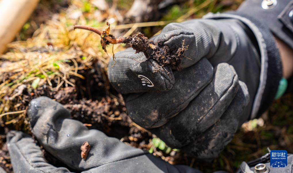 這是在那曲市索縣西昌鄉(xiāng)拍攝的剛采挖出的蟲草(5月18日攝)。新華社記者 丁增尼達 攝 ??
