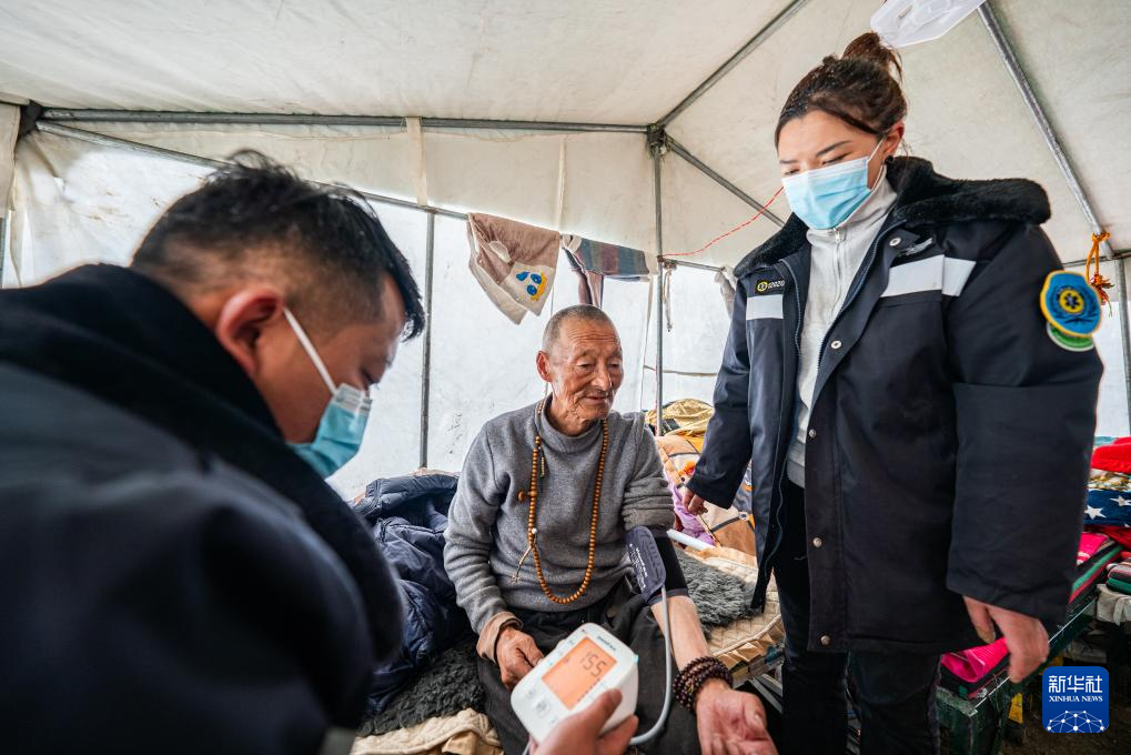 在那曲市索縣西昌鄉(xiāng),衛(wèi)生院醫(yī)務人員為蟲草采集點的牧民測量血壓(5月18日攝)。新華社記者 丁增尼達 攝 ??