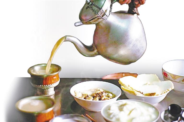人們平常吃的早餐有粥、包子、豆?jié){、面條等,而在高原地區(qū),糌粑和酥油茶是當(dāng)?shù)厝说臓I(yíng)養(yǎng)早餐,也是藏族人餐桌上的必選。其中,酥油茶是為適應(yīng)高寒環(huán)境而創(chuàng)造的特色飲品。它是將牦牛奶提煉的酥油與磚茶湯混合,加入鹽調(diào)味制成的,口感濃郁醇厚。其高脂肪、高熱量的特性,既能抵御嚴(yán)寒,又可緩解高原缺氧帶來的疲勞,既是當(dāng)?shù)厝说脑绮?,也是日常生活中的必需品?/p>