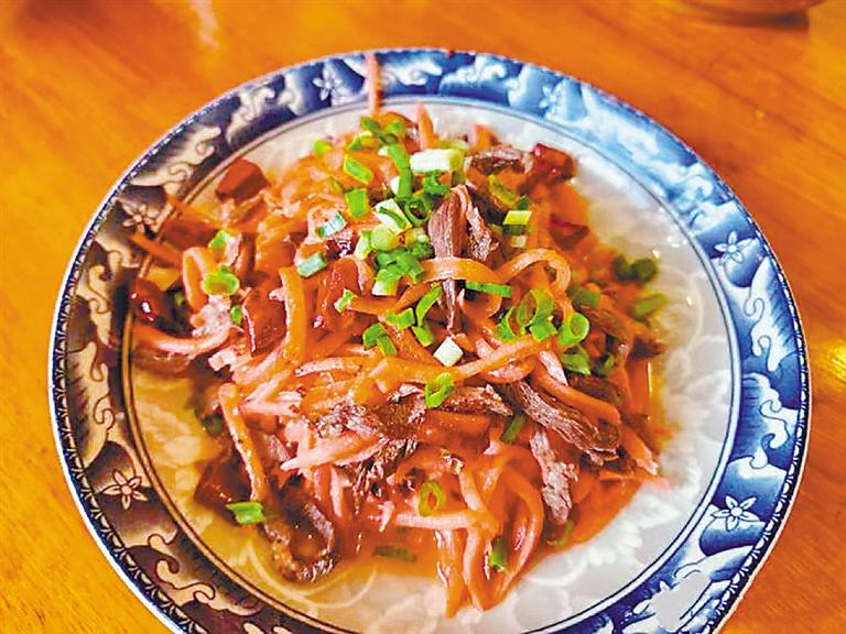 此外,飯桌上還有一道常見菜品——土豆燉牦牛肉。牦牛肉被譽(yù)為“牛肉之冠”,營(yíng)養(yǎng)價(jià)值極高,與土豆一同燉煮,美味無比。土豆的軟糯與牛肉的筋道完美結(jié)合,每一口都能讓人感受到食材的鮮美和湯汁的醇厚。這道菜不僅美味,還是一道滋補(bǔ)身體的家常菜。