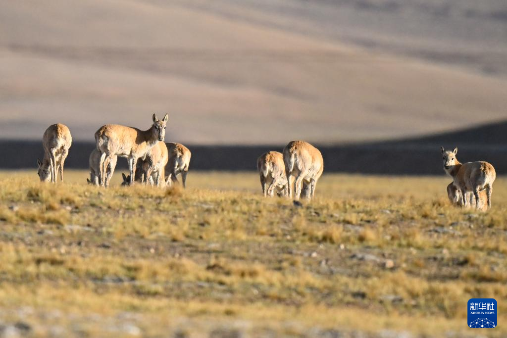 在羌塘國家級自然保護區(qū)核心區(qū)拍攝到的雌性藏羚羊群(6月10日攝)。新華社記者 旦增尼瑪曲珠 攝 ??