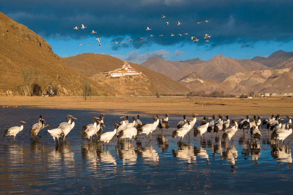 “潔白的仙鶴,請(qǐng)把雙翅借給我,不飛遙遠(yuǎn)的地方,到理塘轉(zhuǎn)一轉(zhuǎn)就會(huì)回?!边@首在西藏家喻戶(hù)曉的民歌中提到的“仙鶴”,就是黑頸鶴。