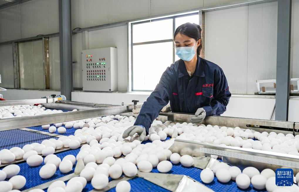 7月4日,工作人員在西藏宏農(nóng)農(nóng)業(yè)發(fā)展有限公司蛋雞養(yǎng)殖場內(nèi)篩選雞蛋。新華社記者 蔣夢辰 攝