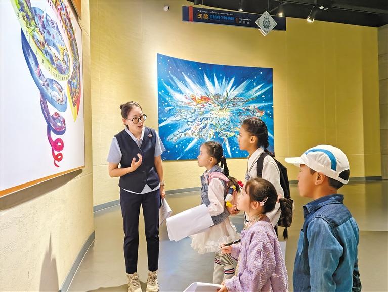 圖為西藏自然科學(xué)博物館工作人員為參加活動(dòng)的孩子們作現(xiàn)場(chǎng)講解。 記者 楊小娟 攝