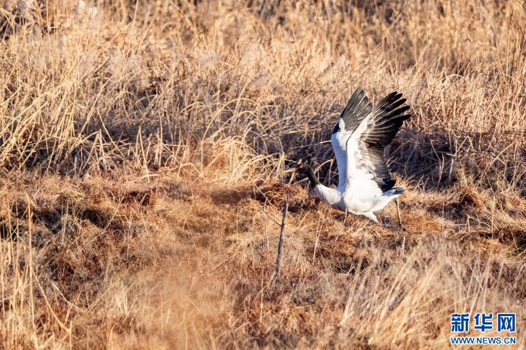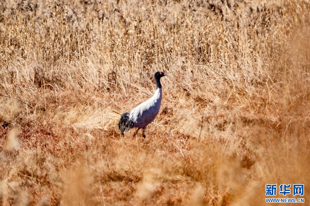 1月9日,在拉薩市拉魯濕地拍攝的黑頸鶴。新華網(wǎng) 旦增努布 攝
