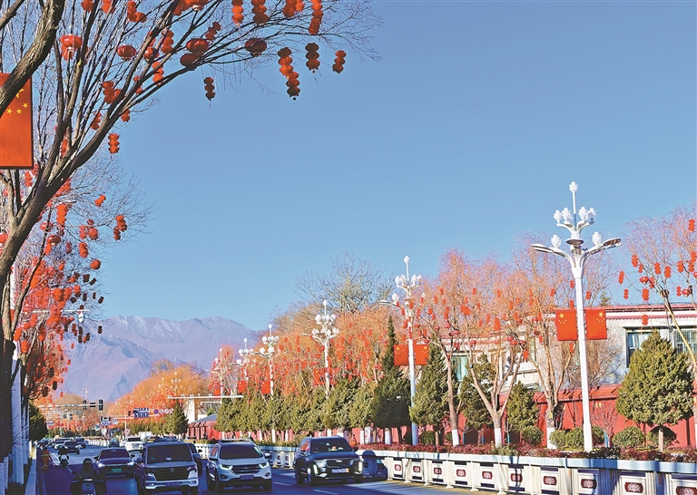 春節(jié)、藏歷新年臨近,拉薩街頭年味漸濃。近日,在拉薩主城區(qū)多條街道,市政工人正忙著懸掛燈籠。放眼望去,鮮艷的燈籠如累累果實(shí)般點(diǎn)綴著冬日街景,在高原的陽(yáng)光照耀下顯得格外喜慶。