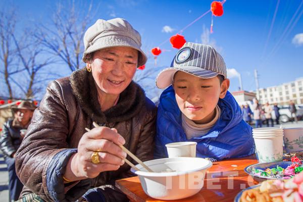 據拉薩市城關區(qū)組織聯(lián)歡活動的工作人員介紹,此次春節(jié)藏歷新年聯(lián)歡活動組織了社區(qū)內的藏、漢、回等各族群眾同吃餃子和“古突”,互道祝福、共度佳節(jié),增進了民族團結和情誼。
