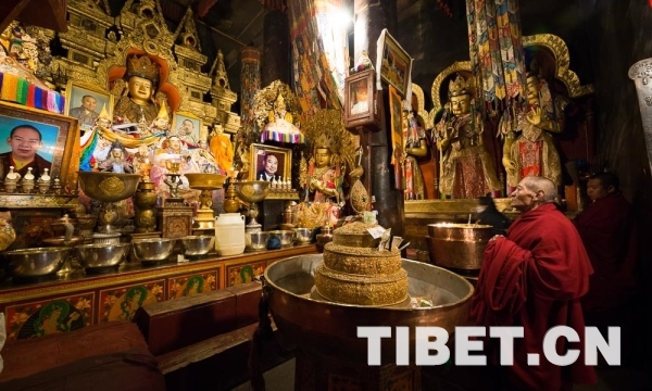 圖為信教群眾在十世班禪大師靈塔殿內(nèi)祈禱。攝影:趙耀。