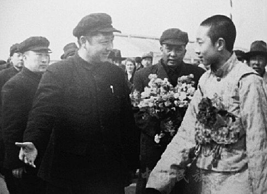 圖為1951年4月22日,習(xí)仲勛(前左)率領(lǐng)西北軍政代表熱烈歡迎途經(jīng)西安赴北京的十世班禪(前右)。 圖片來(lái)源:中國(guó)網(wǎng)