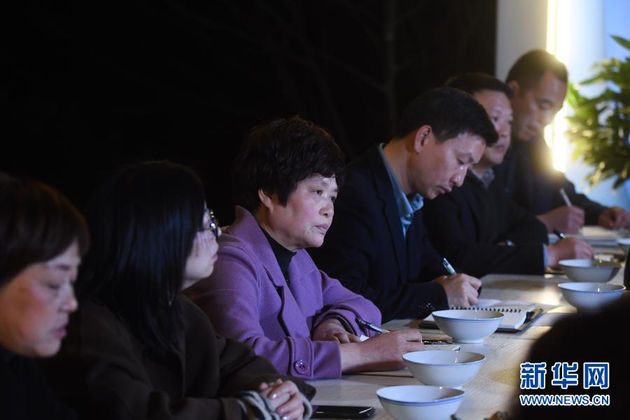 2月22日,全國人大代表、桐廬縣江南鎮(zhèn)環(huán)溪村黨總支副書記周忠蓮(左三)在桐廬縣鐘山鄉(xiāng)參加“新村夜話”討論活動(dòng)。新華社記者 徐昱 攝