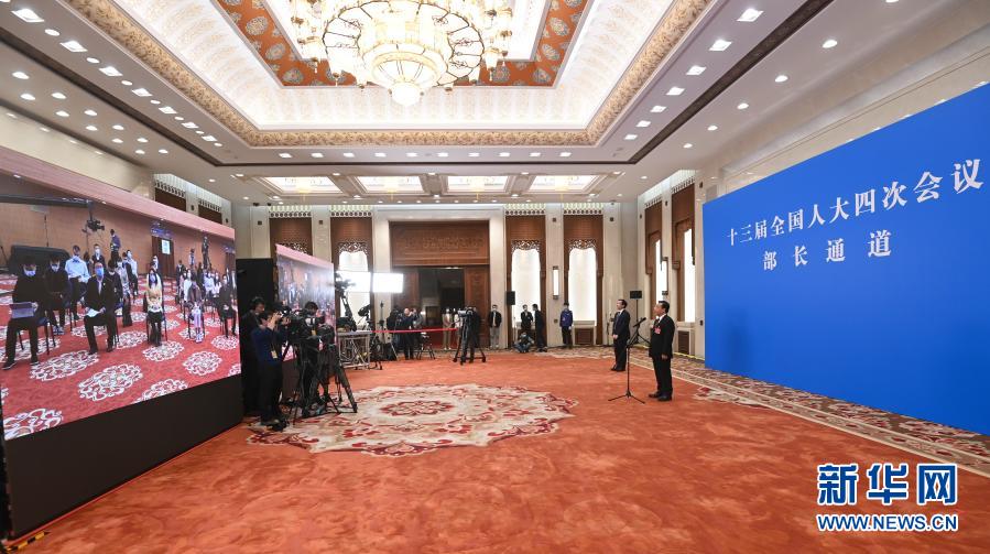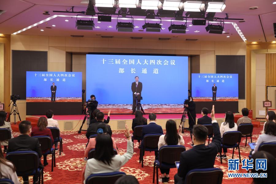 3月5日,第十三屆全國人民代表大會第四次會議舉行首場“部長通道”采訪活動。這是記者在分會場通過網(wǎng)絡視頻方式提問。新華社記者 曹燦 攝
