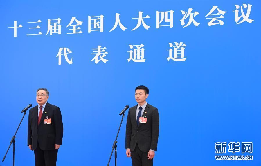 3月8日,第十三屆全國人民代表大會第四次會議舉行第二場“代表通道”采訪活動。這是全國人大代表?xiàng)钫鹕ㄗ螅⒎队镭懀ㄖ校?、齊嵩宇通過網(wǎng)絡(luò)視頻方式接受采訪。