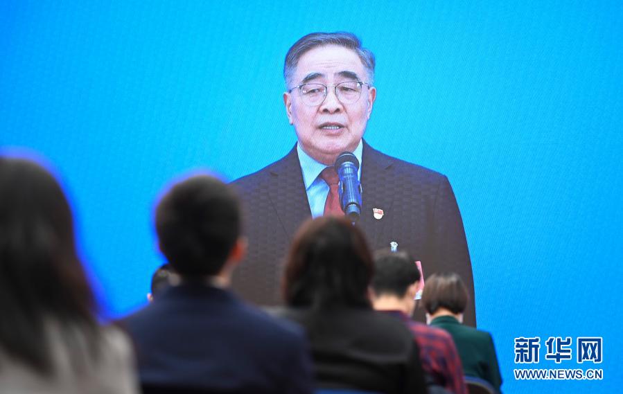 3月8日,第十三屆全國人民代表大會第四次會議舉行第二場“代表通道”采訪活動。這是記者在分會場通過網(wǎng)絡(luò)視頻方式采訪全國人大代表張伯禮。新華社記者 陳曄華 攝