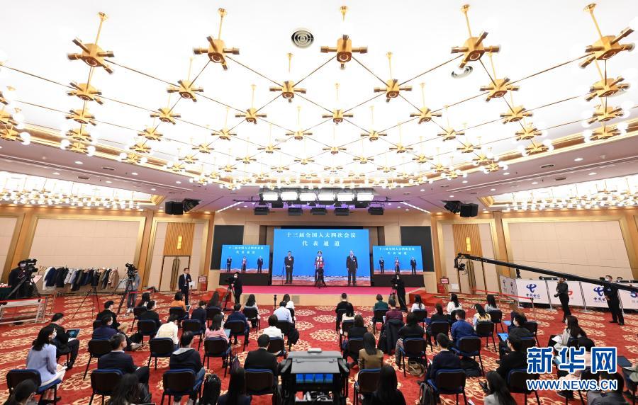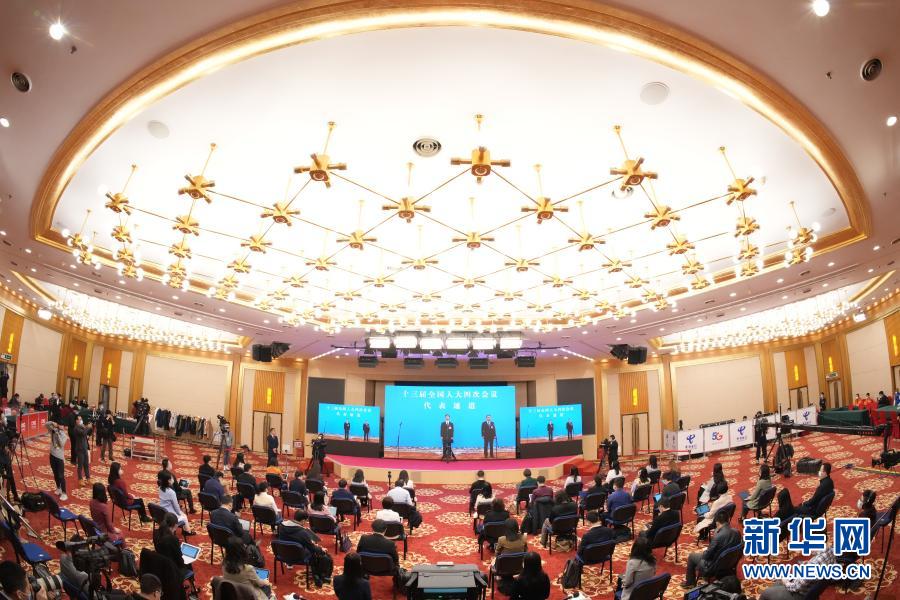 3月8日,第十三屆全國人民代表大會第四次會議舉行第二場“代表通道”采訪活動。這是記者在分會場通過網(wǎng)絡(luò)視頻方式采訪。新華社記者 陳曄華 攝