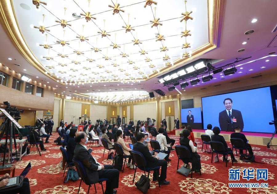 3月10日,全國政協(xié)十三屆四次會議第三場“委員通道”采訪活動在北京人民大會堂新聞發(fā)布廳舉行。這是記者在分會場通過網(wǎng)絡(luò)視頻方式提問。新華社記者 李木子 攝