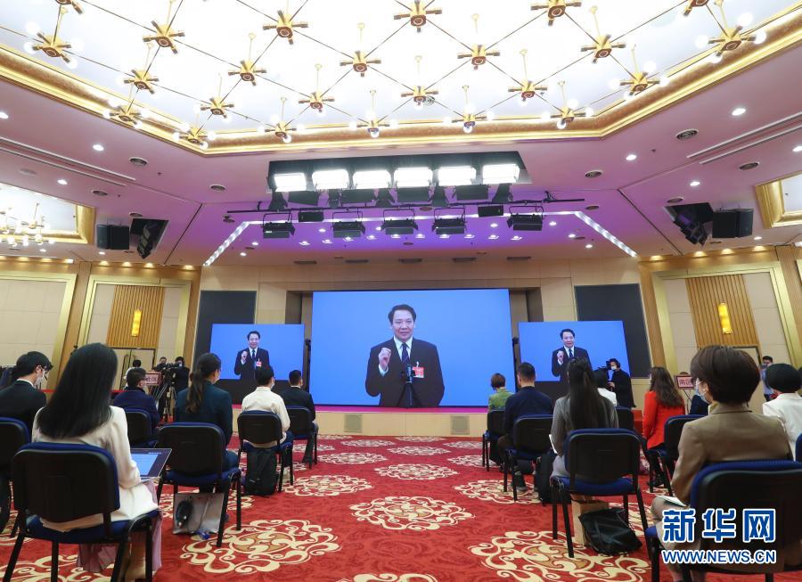 3月10日,全國政協(xié)十三屆四次會議第三場“委員通道”采訪活動在北京人民大會堂新聞發(fā)布廳舉行。這是全國政協(xié)委員陳雨露通過網(wǎng)絡(luò)視頻方式接受媒體采訪。新華社記者 李賀 攝