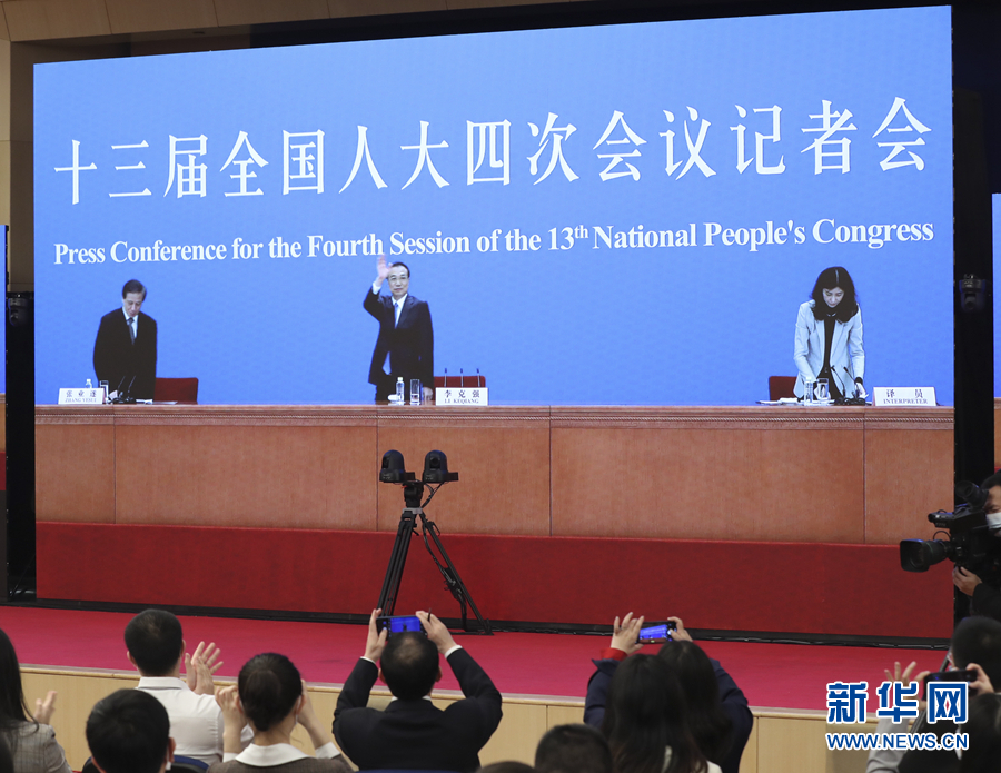 3月11日,國務(wù)院總理李克強在北京人民大會堂出席記者會并回答中外記者提問。這是記者會結(jié)束時,李克強總理向記者致意。新華社記者 金立旺 攝