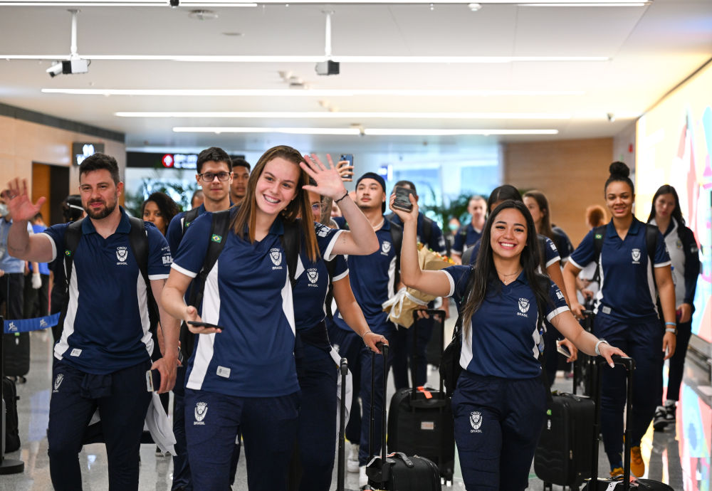 7月21日,巴西代表團運動員抵達(dá)成都天府國際機場。新華社記者 王曦 攝